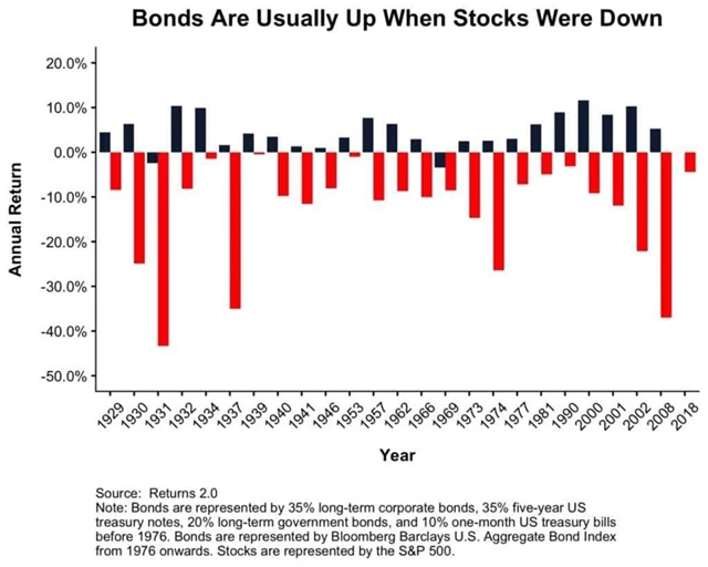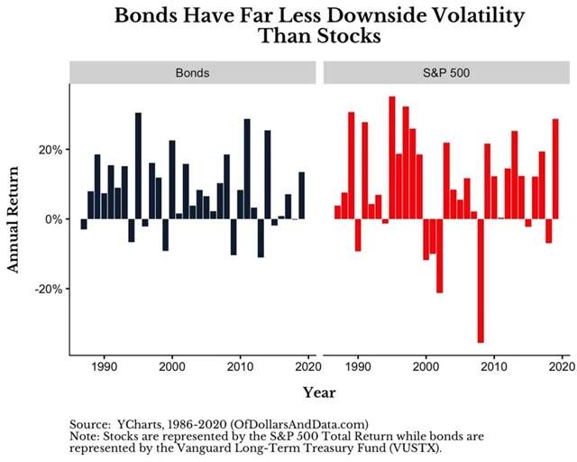 Dluhopisy jsou v neposlední řadě schopné dodávat investorovi určitý výnos, a to při výrazně nižším kolísání, než jaké historicky provází ceny akcií. Roční výkonnosti dlouhodobých amerických dluhopisů a akciového indexu S&P 500 to ukazují jasně - bondy trpí výrazně mělčími ztrátami než akcie. Pravidelnost výnosu dluhopisů je pak podstatná zejména pro investory, kteří již nemají mnoho jiných příjmů, typicky tedy ty starší.