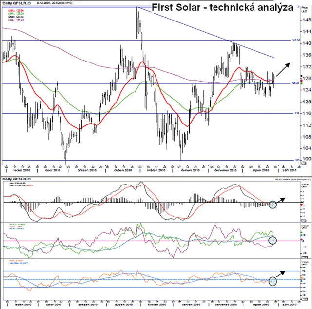 V posledních dnech je slyšet o zvyšování ceny elektřiny kvůli povinnému odběru energie vyrobené solárními panely. Pro vládu možná oříšek a jablko sváru, pro výrobce solárních panelů naopak. Ve sluneční energii mnozí vidí budoucnost. A ta nejbližší se zdá být pozitivní z pohledu technické analýzy i pro jednu z firem ze sektoru - First Solar.