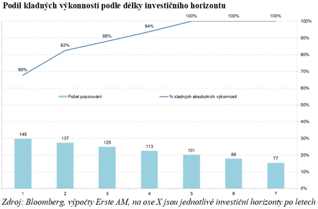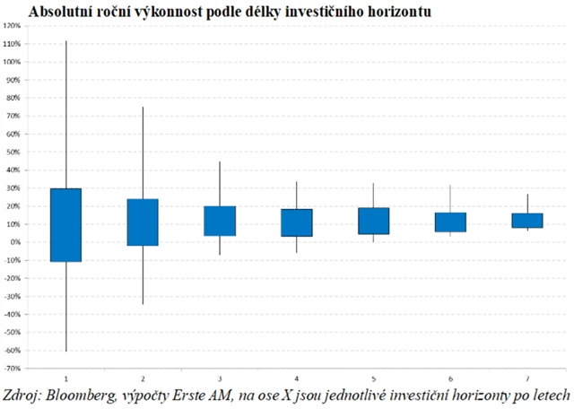 S investicemi do akcií byla, je a vždy bude spojena vyšší volatilita než u jiných standardních investičních aktiv. Jednou z možností, jak lze alespoň částečně eliminovat možné negativní dopady této zvýšené volatility, je mít dostatečně dlouhý investiční horizont. Zpravidla se pro akciové investice doporučuje alespoň 5 let, ale platí, že čím delší, tím zpravidla lepší.