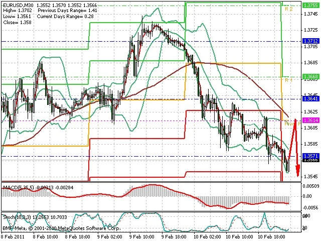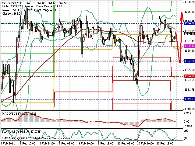 Předpokládaný pohyb pro dnešní den SHORT. Případné vstupy do obchodu z hladiny 1.3615 s předpokládaným cílem 1.354, případně až 1.351. Proražení hladiny 1.3625 může vést k pohybu s pravděpodobným cílem 1.366 až 1.37.