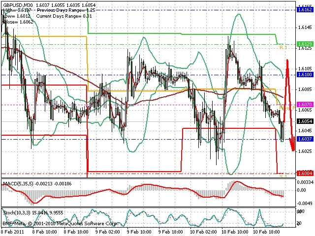 Předpokládaný pohyb pro dnešní den SHORT. Případné vstupy do obchodu z hladiny 1.6115 s předpokládaným cílem 1.5995, případně až 1.595. Proražení hladiny 1.6125 může vést k pohybu s pravděpodobným cílem 1.6165 až 1.619.