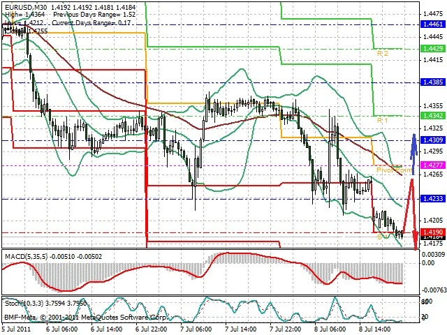 Předpokládaný pohyb pro dnešní den SHORT. Případné vstupy do obchodu z hladiny 1.426 s předpokládaným cílem 1.416, případně až 1.4125. Proražení hladiny 1.427 může vést k pohybu s pravděpodobným cílem 1.431 až 1.4375.
