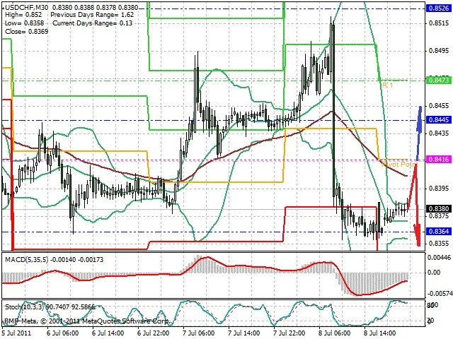 Předpokládaný pohyb pro dnešní den SHORT. Případné vstupy do obchodu z hladiny 0.8415 s předpokládaným cílem 0.835, případně až 0.8325. Proražení hladiny 0.842 může vést k pohybu s pravděpodobným cílem 0.8455 až 0.8505.