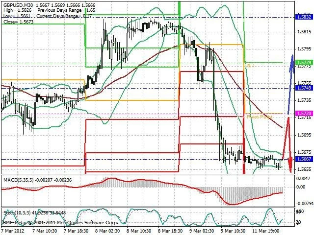 Předpokládaný pohyb pro dnešní den SHORT. Případné vstupy do obchodu z hladiny 1.5715 s předpokládaným cílem 1.5635, případně až 1.56. Proražení hladiny 1.5725 může vést k pohybu s pravděpodobným cílem 1.5785 až 1.583