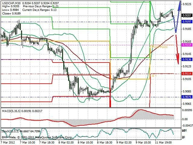 Předpokládaný pohyb pro dnešní den LONG. Případné vstupy do obchodu z hladiny 0.918 s předpokládaným cílem 0.923, případně až 0.925. Proražení hladiny 0.918 může vést k pohybu s pravděpodobným cílem 0.913 až 0.907.