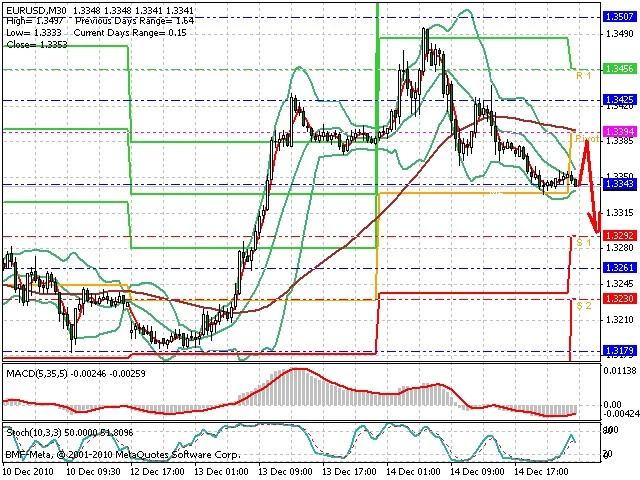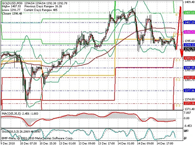 Předpokládaný pohyb pro dnešní den SHORT. Případné vstupy do obchodu z hladiny 1.3385 s předpokládaným cílem 1.3285, případně až 1.325. Proražení hladiny 1.3395 může vést k pohybu s pravděpodobným cílem 1.3435 až 1.35.