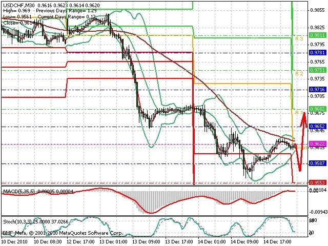 Předpokládaný pohyb pro dnešní den LONG. Případné vstupy do obchodu z hladiny 0.957 s předpokládaným cílem 0.965, případně až 0.9695. Proražení hladiny 0.957 může vést k pohybu s pravděpodobným cílem 0.9525 až 0.9485.