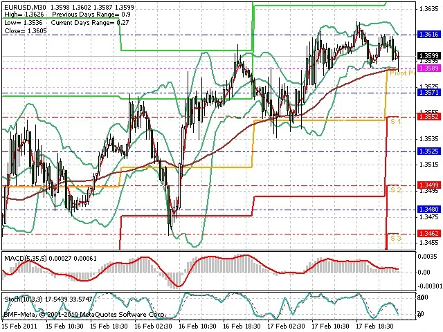 Předpokládaný pohyb pro dnešní den LONG. Případné vstupy do obchodu z hladiny 1.357 s předpokládaným cílem 1.363, případně až 1.367. Proražení hladiny 1.356 může vést k pohybu s pravděpodobným cílem 1.353 až 1.3495.