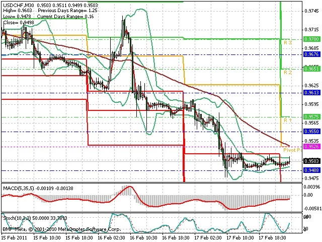 Předpokládaný pohyb pro dnešní den SHORT. Případné vstupy do obchodu z hladiny 0.955 s předpokládaným cílem 0.947, případně až 0.9425. Proražení hladiny 0.955 může vést k pohybu s pravděpodobným cílem 0.962 až 0.965.
