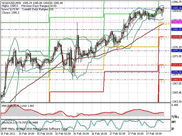 Předpokládaný pohyb pro dnešní den LONG. Případné vstupy do obchodu z hladiny 1 374 s předpokládaným cílem 1 390, případně až 1 400. Proražení hladiny 1 374 může vést k pohybu s pravděpodobným cílem 1 367.5 až 1 356.