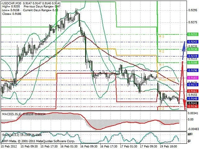 Předpokládaný pohyb pro dnešní den SHORT. Případné vstupy do obchodu z hladiny 0.921 s předpokládaným cílem 0.9135, případně až 0.91. Proražení hladiny 0.921 může vést k pohybu s pravděpodobným cílem 0.924 až 0.927.