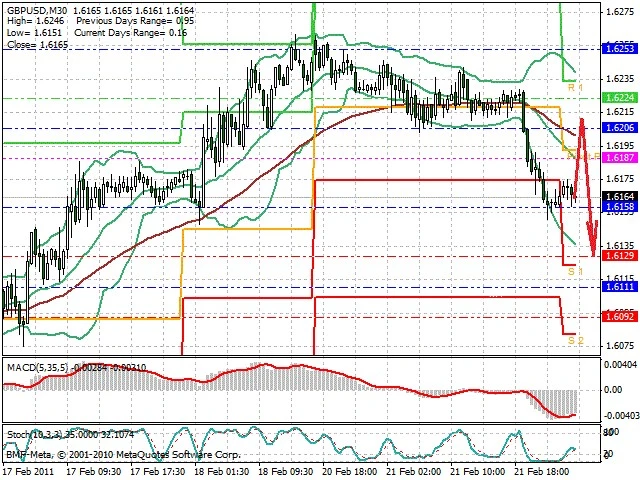 Předpokládaný pohyb pro dnešní den SHORT. Případné vstupy do obchodu z hladiny 1.621 s předpokládaným cílem 1.612, případně až 1.608. Proražení hladiny 1.622 může vést k pohybu s pravděpodobným cílem 1.6265 až 1.632.