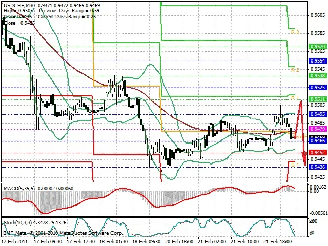 Předpokládaný pohyb pro dnešní den SHORT. Případné vstupy do obchodu z hladiny 0.951 s předpokládaným cílem 0.9425, případně až 0.94. Proražení hladiny 0.951 může vést k pohybu s pravděpodobným cílem 0.954 až 0.96.