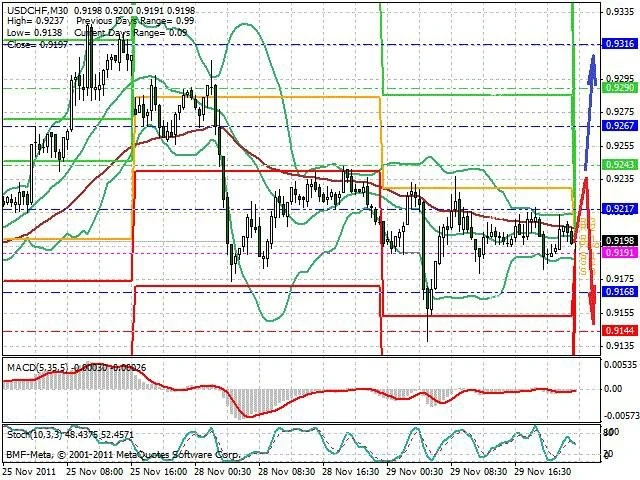 Předpokládaný pohyb pro dnešní den SHORT. Případné vstupy do obchodu z hladiny 0.9235 s předpokládaným cílem 0.915, případně až 0.9135. Proražení hladiny 0.9235 může vést k pohybu s pravděpodobným cílem 0.926 až 0.931.