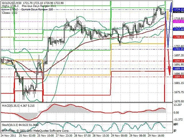 Předpokládaný pohyb pro dnešní den LONG. Případné vstupy do obchodu z hladiny 1.329 s předpokládaným cílem 1.3395, případně až 1.344. Proražení hladiny 1.328 může vést k pohybu s pravděpodobným cílem 1.324 až 1.321.