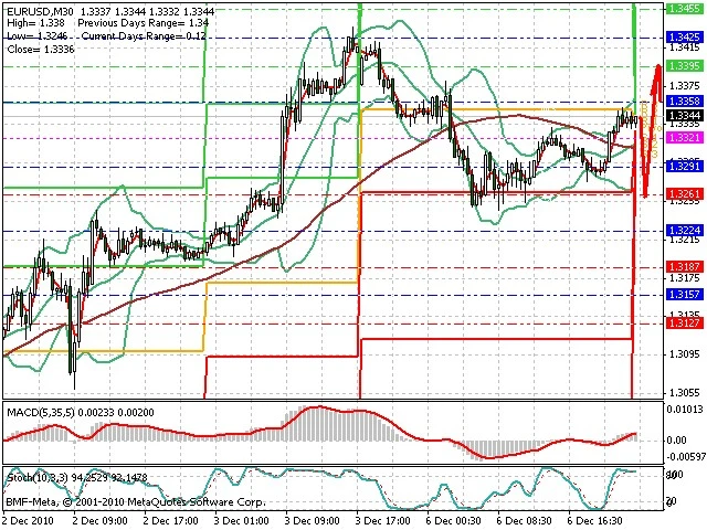 Předpokládaný pohyb pro dnešní den LONG. Případné vstupy do obchodu z hladiny 1.326 s předpokládaným cílem 1.338, případně až 1.3435. Proražení hladiny 1.325 může vést k pohybu s pravděpodobným cílem 1.319 až 1.3135.