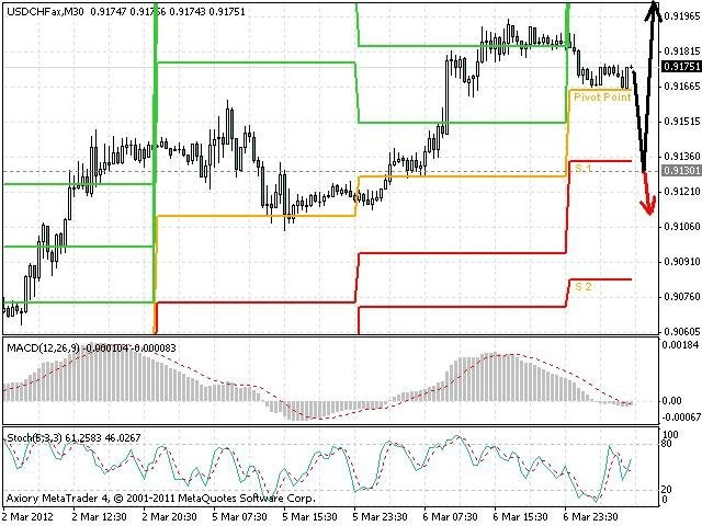 Předpokládaný pohyb pro dnešní den LONG. Případné vstupy do obchodu z hladiny 0.913 s předpokládaným cílem 0.92, případně až 0.923. Proražení hladiny 0.913 může vést k pohybu s pravděpodobným cílem 0.91 až 0.906.