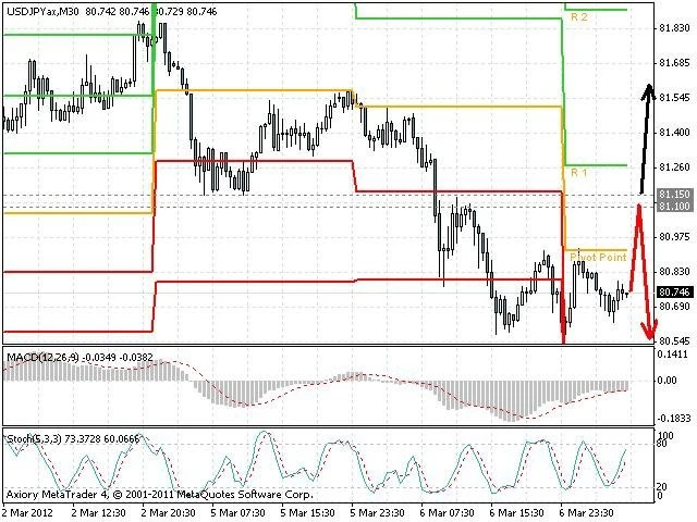 Předpokládaný pohyb pro dnešní den SHORT. Případné vstupy do obchodu z hladiny 81.1 s předpokládaným cílem 80.55, případně až 80.2. Proražení hladiny 81.15 může vést k pohybu s pravděpodobným cílem 81.6 až 81.85.