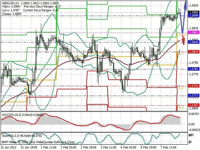 Předpokládaný pohyb pro dnešní den LONG. Případné vstupy do obchodu z hladiny 1.586 s předpokládaným cílem 1.594, případně až 1.598. Proražení hladiny 1.586 může vést k pohybu s pravděpodobným cílem 1.583 až 1.5785.