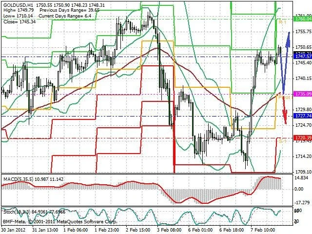 Předpokládaný pohyb pro dnešní den LONG. Případné vstupy do obchodu z hladiny 1 735 s předpokládaným cílem 1 755, případně až 1 764. Proražení hladiny 1 735 může vést k pohybu s pravděpodobným cílem 1 730 až 1 725.