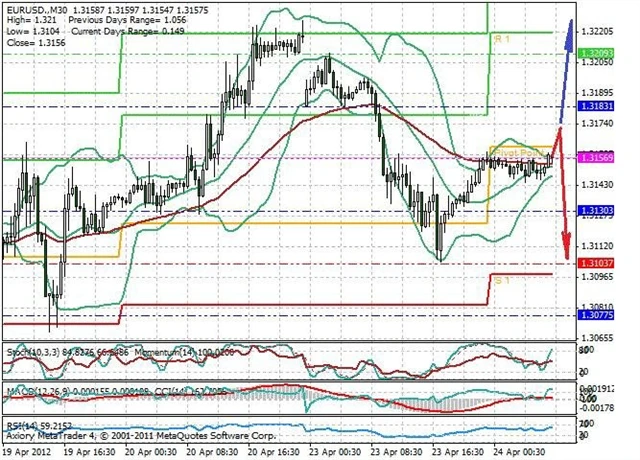 Předpokládaný pohyb pro dnešní den SHORT. Případné vstupy do obchodu z hladiny 1.317 s předpokládaným cílem 1.3105 případně až 1.3065. Proražení hladiny 1.318 může vést k pohybu s pravděpodobným cílem 1.323 až 1.328.