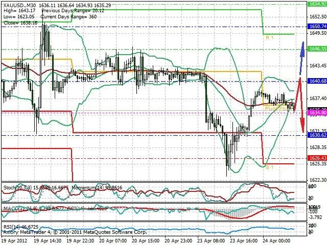 Předpokládaný pohyb pro dnešní den SHORT. Případné vstupy do obchodu z hladiny 1 640 s předpokládaným cílem 1 631, případně až 1 623. Proražení hladiny 1 640 může vést k pohybu s pravděpodobným cílem 1 647 až 1 654.