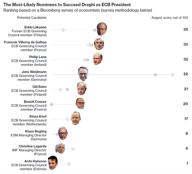 Kandidáti na post šéfa ECB (k 29. srpnu 2018)