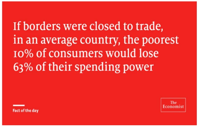 Obchodní bariéry všeho druhu (z)mění obchod a obecněji přeshraniční toky zboží. Ty byly od začátku 90. let tvořeny ve stále větší míře pohyby v rámci výrobních řetězců, což vedlo k úsporám firem i domácností. Zároveň to ale stvořilo velice zranitelný systém, v důsledku čehož mávnutí motýlích křídel takřka kdekoli na světě mohlo a může znamenat zastavení výroby velkých koncernů na druhé straně planety.