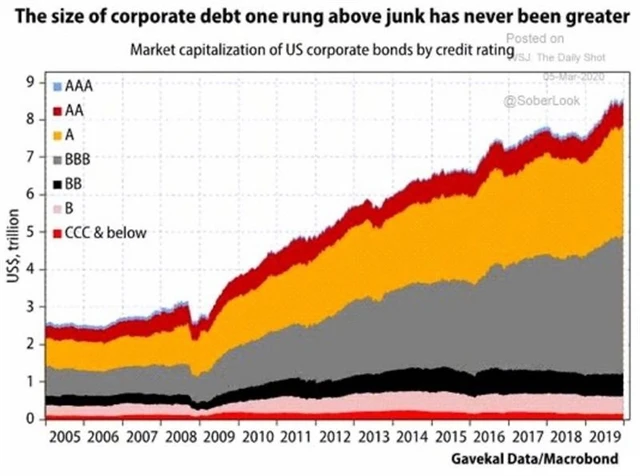 Neznámou s potenciálem udělat z poslední globální finanční krize v porovnání s tím, co přijde, "dětskou hru", jak hrozí Angus Coote z Jamieson Coote Bonds, jsou zejména dluhopisy s ratingem těsně nad neinvestičním pásmem. Na ty se v honbě za výnosy mnozí investoři v posledních letech zaměřili. Jejich (možné) problémy doprovázené přeřazením mezi junk by přitom znamenaly masivní nucené výprodeje z portfolií fondů doprovázené úprkem mnohých, již tak nervózních individuálních tržních hráčů.