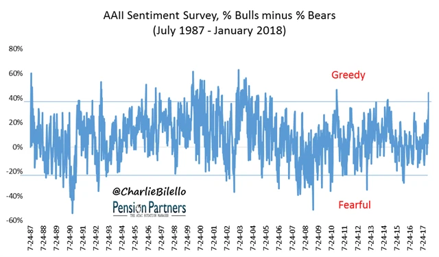 Šéf analýz ve společnosti Pension Partners Charlie Bilello považuje trh celkově za chamtivý tehdy, je-li křivka indexu sentimentu v pásmu 5 % nejvyšších hodnot (percentil 95-100), a za opatrný tehdy, je-li aktuální hodnota indexu v pásmu 5 % nejnižších hodnot (percentil 0-5).