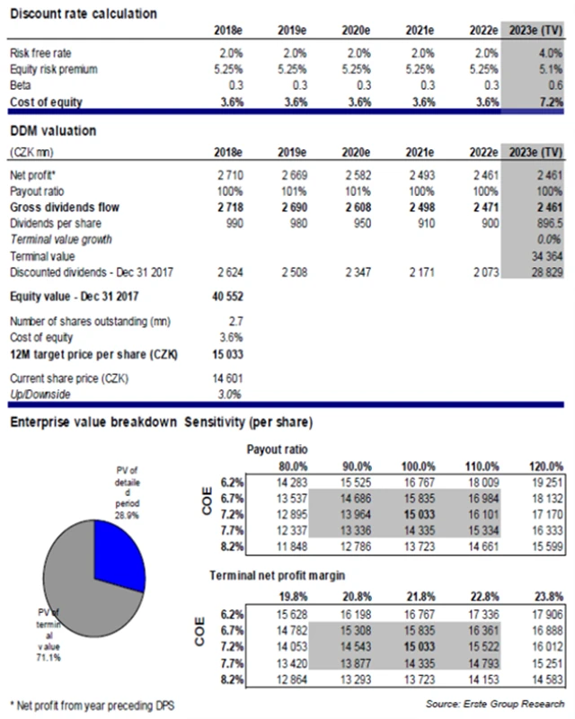 Pro ocenění byl využit dividendový diskontní model s odhady pro roky 2017-2021.