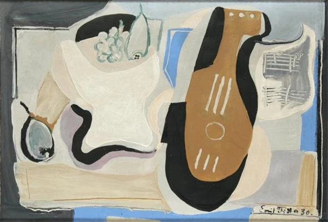 9-10)Emil Filla: Zátiší s mandolínou a ovocem - 1930 olej na plátně / 72,5 cm x 50 cm / 3 120 000 Kč / Dorotheum 23. 5. 2009