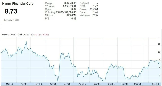 Loni poklesly akcie Hanmi Financial o 20 %. Společnost v listopadu navýšila kapitál, a bez problému tak splňuje aktuální regulatorní požadavky. Otázkou zůstává, jak banka naloží se svými opravnými položkami (deferred tax assets – DTA) v hodnotě 80 milionů USD.