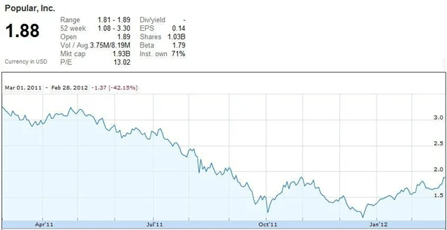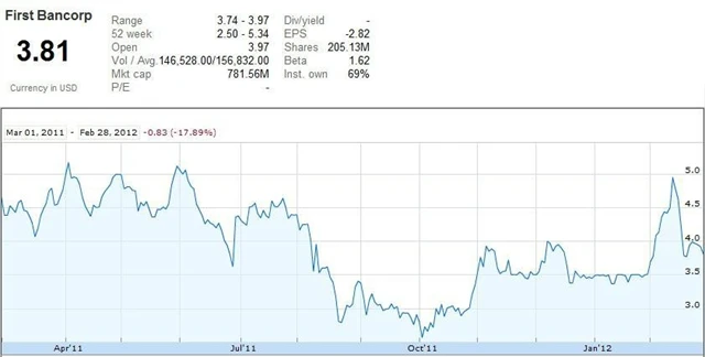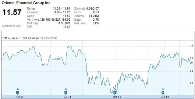 V loňském roce akcie zaznamenaly 49% propad. Portorická banka značně navýšila kapitál prodejem 150 milionů akcií institucionálním investorům. V návaznosti na zvyšování kapitálu byly prioritní akcie programu TARP v hodnotě 424,2 milionu USD přeměněny na akcie kmenové. V posledním čtvrtletí 2011 vykázala čistou ztrátu 14,8 milionu USD. Management se nyní bude soustředit na řešení problémových aktiv a zlepšování ziskovosti.