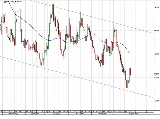 Vývoj na trhu se zemním plynem není v poslední době je pro obchodníky hledající výhodné obchody zajímavý. Drobné nárůsty cen se jeví jako pokrývání pozic spekulujících na pokles, tzv. short covering.Ve skutečnosti během posledních 20 obchodních dní ceny poklesly o více než 30 %, a pouze ve 2 obchodních dnech byly vykázány znatelné zisky.