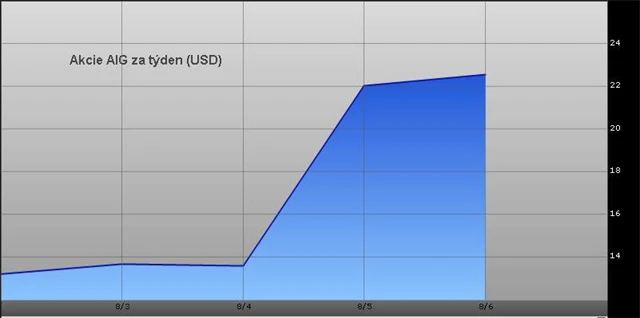 Akcie AIG ve středu po klidném úvody vystřelili vzhůru o 70%, konkrétně z 13,52 USD za akcii atakovaly hranici 23 USD během pár hodin. Spanilá jízda pokračovala i ve čtvrtek ,když před začátkem obchodování trhy signalizovaly nárůst o dalších 30% a akcie se dotkla hodnoty 29 USD. Co stojí za nárůstem hodnoty této “zombie“ akcie, jak jí přezdívají na Wall Street?