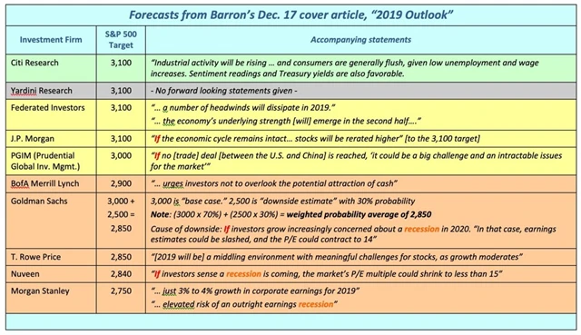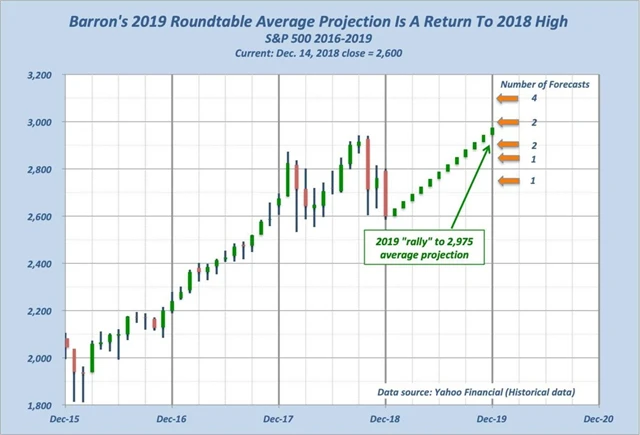Očekávání růstu není překvapením, ale nečekané jsou poměrně nízké cílové ceny velkého množství oslovených. V polovině prosince (kdy průzkum proběhl) index S&P 500 byl na 2 600 bodech. Nejvíce optimistické předpovědi na 3 100 bodech by tedy měly znamenat růst o téměř 20 %. Před posledním propadem ale bylo maximum indexu S&P 500 na 2 940 bodech, což znamená i u nejoptimističtějších předpovědí nárůst o přibližně 5 %. Zbytek je pouze návratem k původnímu maximu, většina předpovědí nedosahuje ani na maxima z roku 2018, což je trochu v rozporu s očekávanými zisky společností.