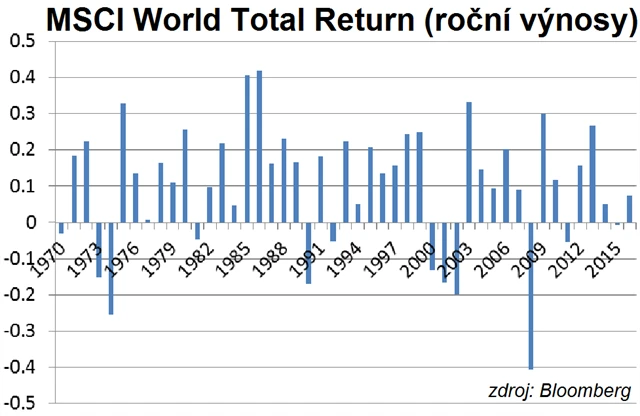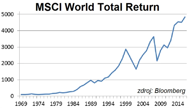Pokud se podíváme na historické statistiky, zjistíme, že globální akciové trhy si od roku 1970 (měřeno indexem MSCI World Total Return) připsaly do konce roku 2016 včetně dividend na první pohled až neuvěřitelné zhodnocení 4 744 %. Průměrný roční výnos včetně dividend tedy činil 8,6 %. Akcie tak v dlouhém období jasně porážejí vedle dluhopisů také inflaci, což je pro reálné zhodnocení úspor po očištění o inflaci klíčové.