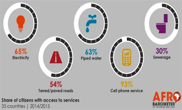 93 % Afričanů má mobilní telefon a stále častěji i díky tomu také internet, jen 66 % populace má ale například zajištěnou pitnou vodu. Infrastruktura jinde považovaná za normál na mnoha místech v Africe chybí. Moderní technologie v některých segmentech tento problém mažou (mobilní bankovnictví, dopravní drony a další), všechny problémy ale nevyřeší.
