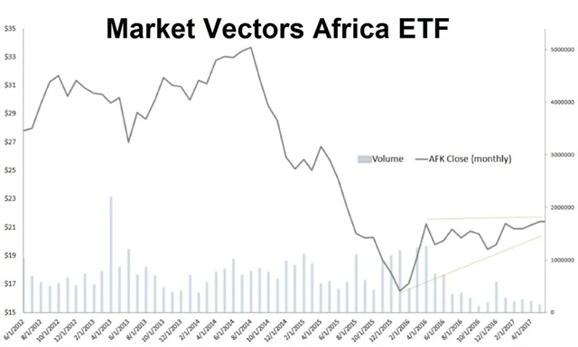48 % odepsal během posledních devíti let Market Vectors Africa ETF, čímž jen potvrdil jedno z rizik spojených s trhy zítřka, a to že předčasný nástup bolí (dvojnásob, když nakoupíte na začátku krize). Letos ale fond hlásí 8% růst a část trhu mluví o odrazu ode dna. Kvituje přitom i sázku na finanční služby a komunikace, která doplňuje pro Afriku tradiční komodity.