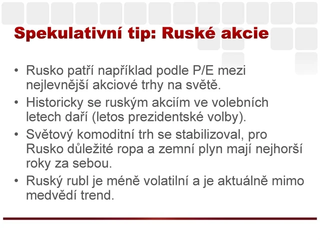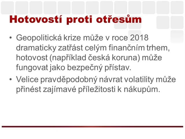 Vážení čtenáři, již tradičně si dovoluji seznámit vás se svými osobními investičními preferencemi pro příštích dvanáct měsíců. Loňské tipy nedopadly špatně - americké akcie připsaly přes 20 %, česká zemědělská půda podle údajů serveru Farmy.cz zhodnotila o 15-20 % a akcie ČEZ přidaly přes 30 %. Co mi nevyšlo, byla spekulace na oslabení zlata. Přeji vám úspěšný investiční rok!