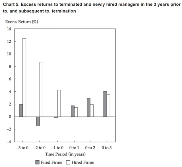 Při faktorovém (ani jiném) investování dlouhodobý horizont neznamená například tři roky. Vlastně jde o nejhorší možný interval, na jehož základě by investor měl něco hodnotit. Ukazuje to graf toho, jak se rozhodují penzijní fondy v USA o tom, do jakého fondu investují peníze (bílé sloupce) a jakého fondu se zbaví (šedé sloupce). Ty fondy, do kterých investují, měly ve třech letech před investicí nadprůměrné výsledky, ale po investici na tom byly hůře než fondy, kterých se penzijní společnosti zbavovaly. A to v penzijních fondech pracují profesionálové, kteří by měli být lepší než drobní investoři.