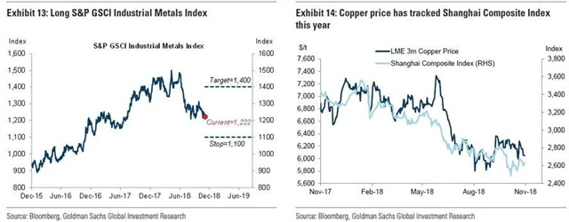 Průmyslové kovy loni prudce oslabily kvůli obavám z obchodních válek a silnějšímu dolaru. Zásoby mědi, hliníku, zinku a niklu však klesaly, což naznačuje, že poptávka překonala nabídku. Takže i když makroekonomická rizika nemizejí, jsou již většinou zahrnuta v cenách komodit. Průmyslovým kovům mohou pomoci i větší investice do infrastruktury v Číně kvůli tlaku na nižší vývozy a spotřebu.
