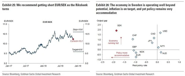 Švédská ekonomika je na tom dobře, inflace je na cíli, ale sazby jsou i tak v mínusu. Je tedy pravděpodobné, a centrální bankéři začínají být konkrétnější, že dojde k silnějšímu utažení měnové politiky než u ECB, což povede k posílení švédské koruny. Rizikem může být pouze zhoršení nálady v Evropě, na kterou je švédská koruna poměrně citlivá.