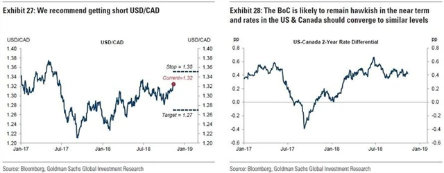 USA i Kanada jsou ve stejné fázi cyklu, takže by Bank of Canada měla pokračovat ve zvyšování sazeb a ty by se měly postupně přibližovat k sazbám Fedu. Přijetí USMCA (náhrada za NAFTA) a růst cen kanadské ropy WCS, která je proti americké WTI stále výrazně levnější, by mohly podpořit kanadskou ekonomiku a kanadský dolar. Rizikem mohou být přetrvávající problémy s těžbou ropy, což může limitovat posilování kanadské měny.
