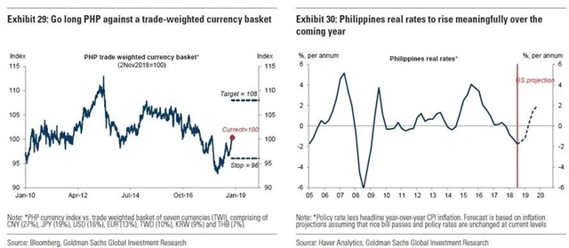 Kombinace jestřábí filipínské centrální banky, nižší inflace, vyšších reálných sazeb a zpřísňování finančních podmínek v zemi by měla omezit negativní vlivy schodku běžného účtu, vyšších veřejných výdajů a růstu dovozů rýže, a tak pomoci pesu k nadvýkonnosti.