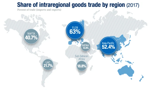 I proto se obchod od restartu ekonomiky po krizovém kómatu ve stále větší míře uzavírá do předvídatelnějších regionálních bublin, z nichž ty nejrobustnější se nacházejí v Evropě a Asii. Tyto dva bloky přitom z pohledu vzájemné směny zboží představují nejvýznamnější globální sílu.
