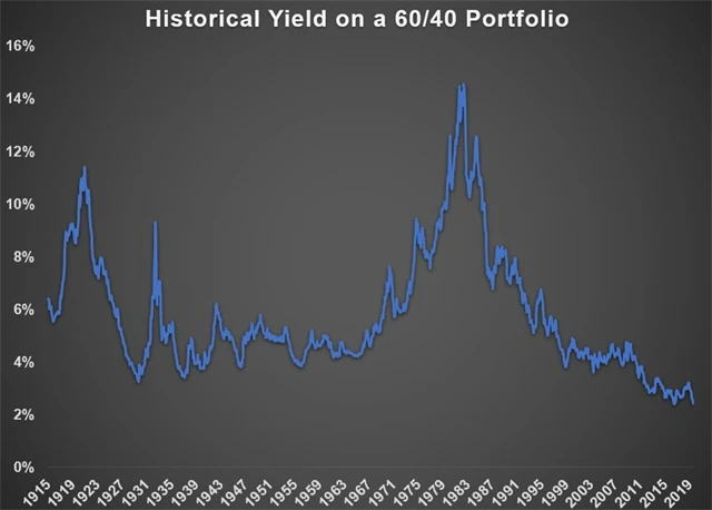 Na konci srpna se výnos 10letých bondů pohyboval okolo 1,70 % (nyní mezi 1,80 a 1,90). Ziskový výnos (v podstatě obrácený ukazatel P/E) v rámci indexu S&P 500 byl zhruba 3,5 %. Kombinovaný výnos zmíněného portfolia byl tedy jen 2,4 %. To je (společně s hodnotami z roku 2016) nejméně od roku 1915. A tak se zdá, že investovat nyní v USA do klasických aktiv je opravdu pořádná výzva.