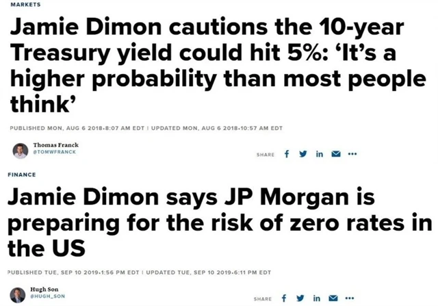 Své o tom ví třeba i šéf JPMorgan Jamie Dimon, který loni v létě varoval před výnosy 10letých bondů kolem 5 %, o 13 měsíců později ale hovořil o riziku nulových sazeb v USA. A když to neví šéf obří americké banky, pro kterou jsou výnosy dluhopisů a sazby obecně základním stavebním kamenem strategie a hospodářského výsledku, je na úvaze drobných investorů, zda se o něco takového vůbec mají pokoušet.