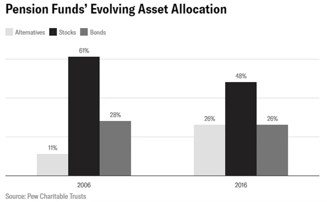 V případě amerických penzijních fondů podíl peněz investovaných prostřednictvím nestandardních nástrojů stoupl mezi roky 2006 a 2016 ze zhruba 11 % na 26 %, a to zejména na úkor běžných akciových pozic. Drobní investoři i portfoliomanažeři jsou přesvědčení, že tyto nástroje nabízejí zajímavější výkonnost než běžné akciové pozice nebo takzvané likvidní alternativy v podobě burzovně obchodovaných fondů a podobně.